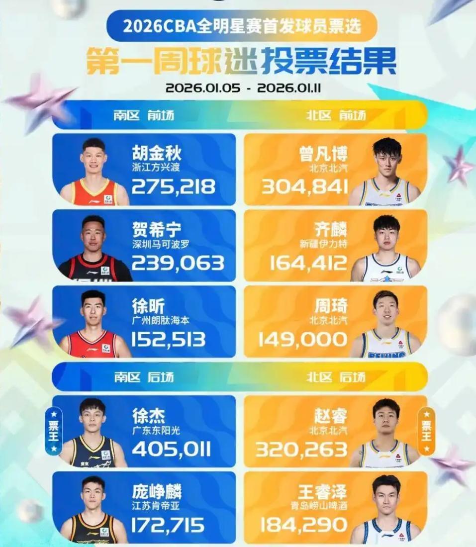 目前在CBA常规赛进行的同时,我们看到全明星投票的活动也正在火爆进行中。眼下已经公布了首期的投票结果,我们来看一下具体的情况。